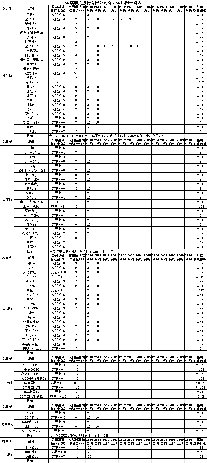 保证金比例提示2025-10-17