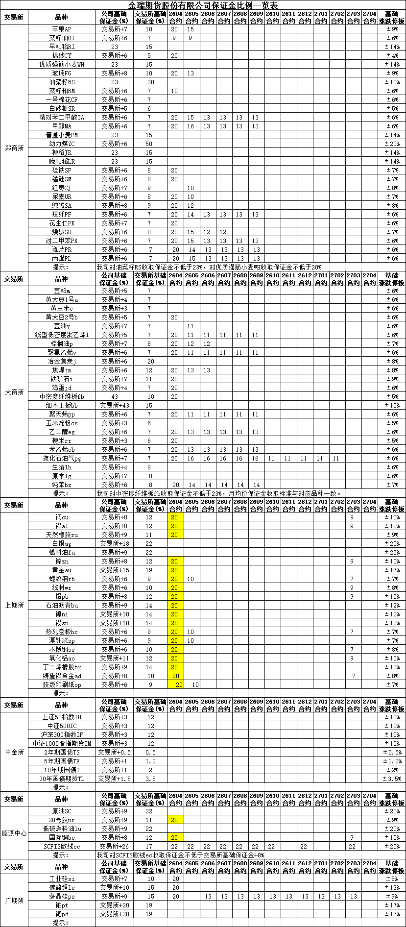 保证金比例提示2026-04-13