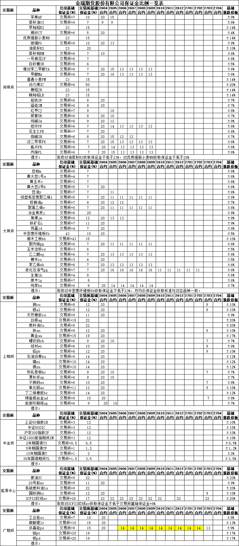 保证金比例提示2026-04-14