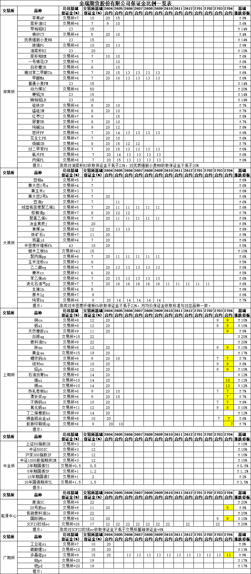 保证金比例提示2026-04-17